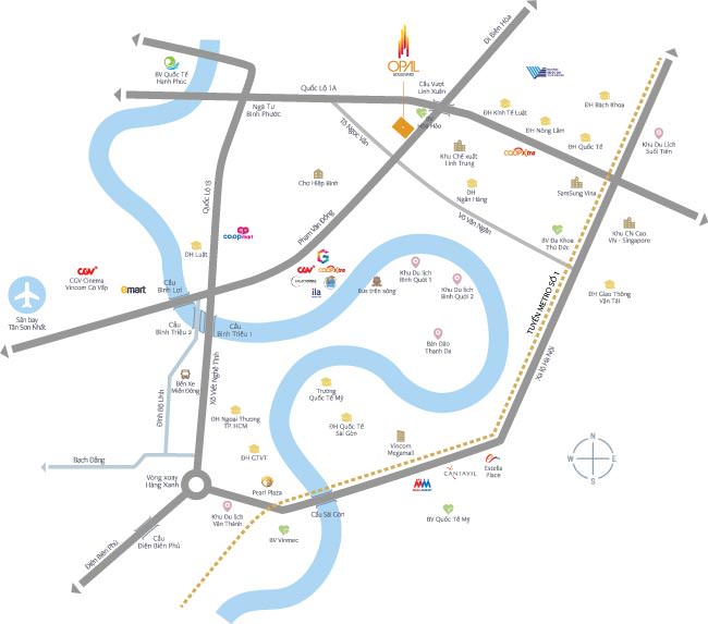 Tọa lạc trên trục đại lộ Phạm Văn Đồng, Opal Boulevard có vị trí giao thương chiến lược, nằm giữa Tp.HCM, Đồng Nai, Bình Dương, mang lại lợi thế kết nối độc đáo mà không dự án nào sánh được.